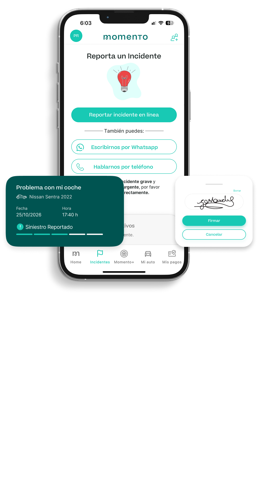 En Momento Seguros, nos destacamos por la rapidez, hemos indemnizados en menos de 24 horas. Todos nuestros procesos cumplen con lo establecido por la Comisión Nacional deSeguros y Fianzas (CNSF) y la CONDUSEF, lo que garantiza la validez de tu póliza.